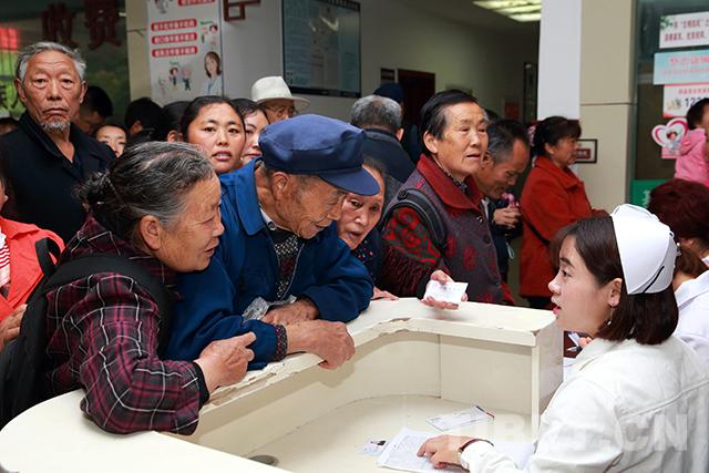 圖為當(dāng)?shù)厝罕娫阢氪h中醫(yī)醫(yī)院義診點(diǎn)排隊(duì)掛號(hào)。