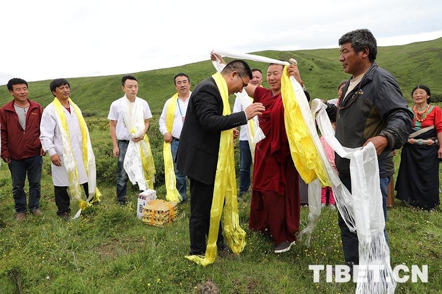 穿過一條條小溪來到山腰處才讓的家,他們一家向?qū)<覉F(tuán)隊敬獻(xiàn)了哈達(dá)。王現(xiàn)海與延慶區(qū)延慶鎮(zhèn)社區(qū)衛(wèi)生服務(wù)中心院長史武軍、延慶區(qū)康莊鎮(zhèn)社區(qū)衛(wèi)生服務(wù)中心院長萬愛民分別向才讓拉毛各捐贈助學(xué)金1000元。臨行前才讓家人又向?qū)<覉F(tuán)隊成員送上當(dāng)?shù)氐乃钟秃汪佤巍?/p>