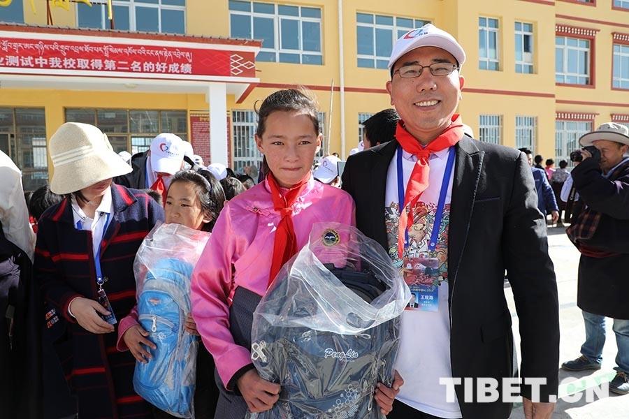 7月11日,王現(xiàn)海與隨行團(tuán)隊專家到瑪曲縣第一小學(xué)參加學(xué)生們的畢業(yè)典禮,并向?qū)W生代表送上學(xué)習(xí)用品。