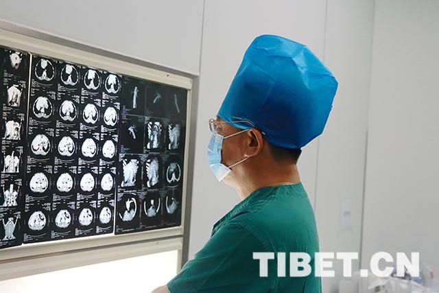 手術(shù)前,李寧院長(zhǎng)再次核查格日的病情。攝影:陳衛(wèi)國(guó)