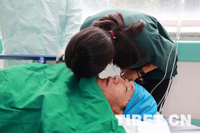手術(shù)結(jié)束后,格日與女兒交流。攝影:陳衛(wèi)國(guó)