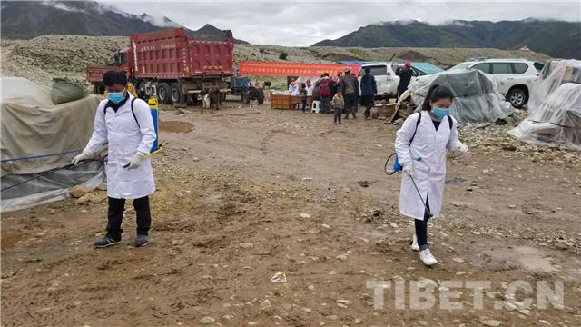 圖為昂仁縣醫(yī)護人員開展定點消毒