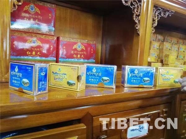 圖為德格藏醫(yī)院副院長伍金丹增向記者展示傳統(tǒng)裝藏藥的藥盒。