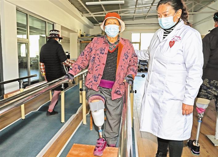 圖為西藏自治區(qū)殘疾人康復(fù)服務(wù)中心的工作人員在幫助殘疾人進行康復(fù)訓(xùn)練。記者 唐斌 洛桑 攝