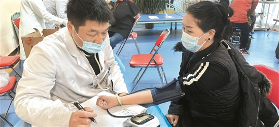 “來吸氣呼氣。好,再來吸氣呼氣……”眼前,正在體檢內(nèi)科進行聽診和測量血壓的是市殘疾人日間照料樣板模式服務點托養(yǎng)對象邊珍。體檢中心內(nèi)科醫(yī)生盧濤一邊為邊珍體檢,一邊耐心地詢問她近期身體有沒有不適。就邊珍提出的鼻炎的問題,盧醫(yī)生提醒她冬季一定要注意保暖,平時外出要戴好口罩,不要接觸刺激性的煙霧、粉塵、油煙等。邊珍告訴記者,在她15歲時由于高燒導致下肢殘疾,來到該服務點前,生活無法自理,如今,經(jīng)過近兩年的牽引、按摩、站立、行走等康復訓練后,身體素質(zhì)顯著改善,而這也是她在服務點進行的第三次免費體檢?!皩ξ覀儊碚f,平時如果想去醫(yī)院體檢很不方便,這次體檢中心醫(yī)護人員專程到服務點來為我們體檢,項目也非常齊全,讓我感受到了黨和政府對殘障人士的關(guān)心、關(guān)愛?!边呎湔f。