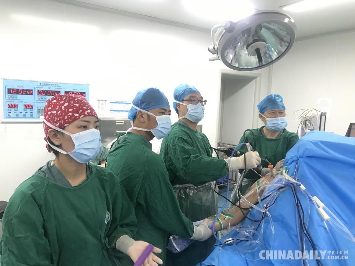 程序醫(yī)生和西藏自治區(qū)人民醫(yī)院醫(yī)生一道開展肩袖撕裂鏡下手術。中國日報達窮攝