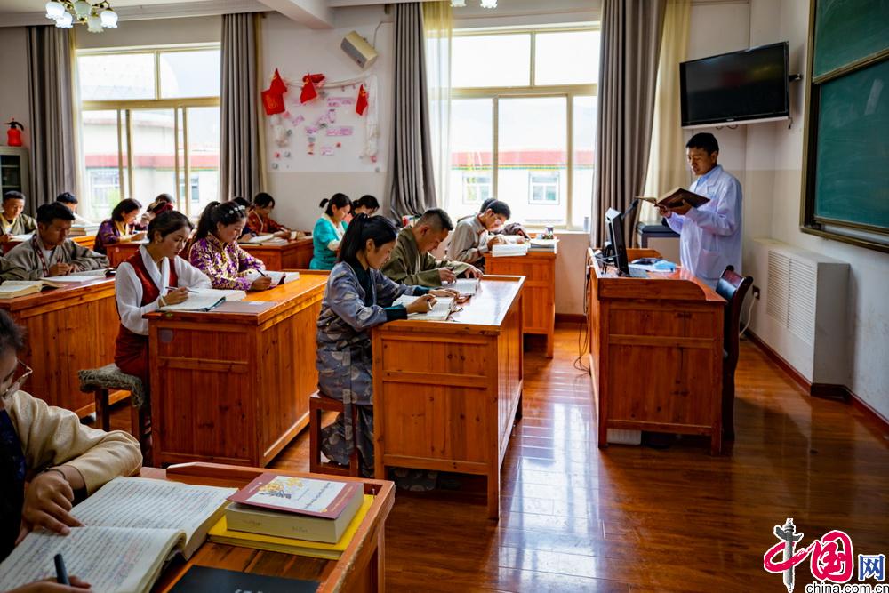 西藏藏醫(yī)藥大學建校之初,僅有1個藏醫(yī)學專業(yè)。隨后2001年設置藏藥專業(yè),2018年設置護理學和市場營銷學專業(yè),2020年設置中(藏)西臨床醫(yī)學、中(藏)藥制藥專業(yè)。2019年藏醫(yī)學、藏藥學專業(yè)入選省級一流本科專業(yè)。2021年藏醫(yī)學入選國家級一流本科專業(yè)建設點。至此,學校形成了以藏醫(yī)學國家級一流本科專業(yè)建設點為引領,以藏醫(yī)學、藏藥學2個省級一流專業(yè)建設點為支撐,以藏醫(yī)學、藏藥學、護理學、市場營銷、中(藏)西臨床醫(yī)學、中(藏)藥制藥6個本科專業(yè)為基礎的發(fā)展新格局。圖為西藏藏醫(yī)藥大學學生正在上課。中國網(wǎng)記者 鄭亮攝