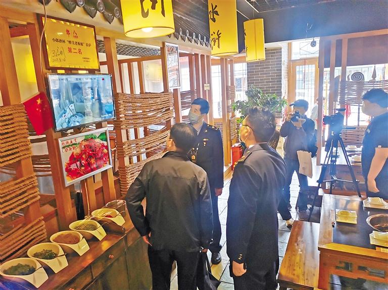 拉薩市市場監(jiān)管局及相關(guān)部門組成檢查組在某餐廳查看“明廚亮灶”情況。
