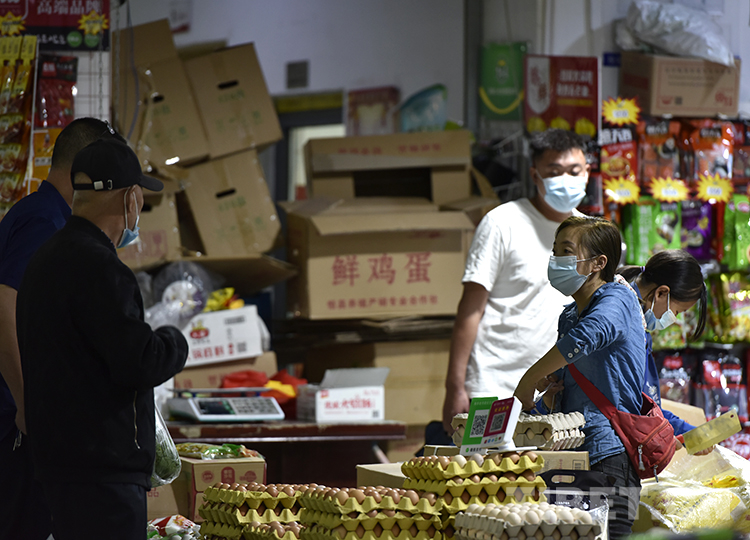 圖為8月9日,市民在拉薩柳梧農貿市場購買雞蛋 攝影:王媛媛