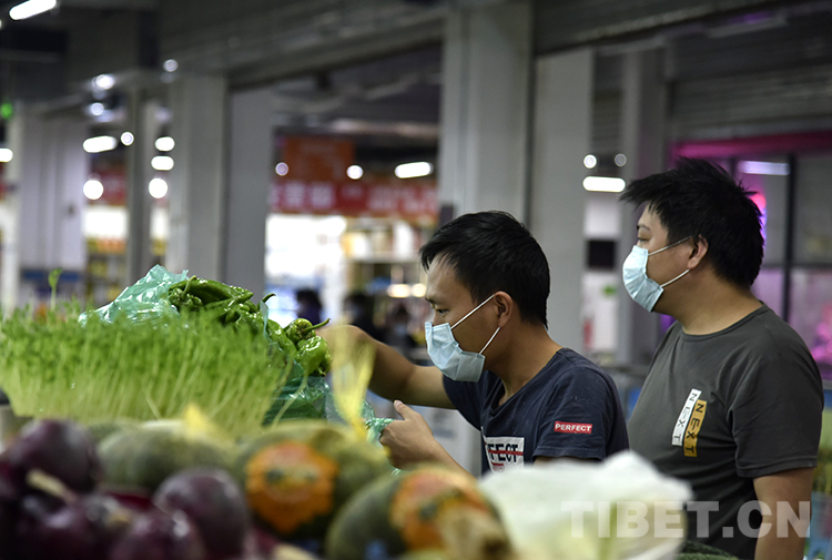 圖為8月9日,市民在拉薩柳梧農貿市場挑選蔬菜 攝影:王媛媛