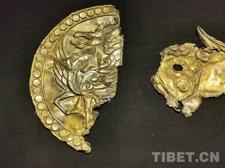 圖為青海都蘭熱水2018血渭一號(hào)大墓出土的鎏金飾片
