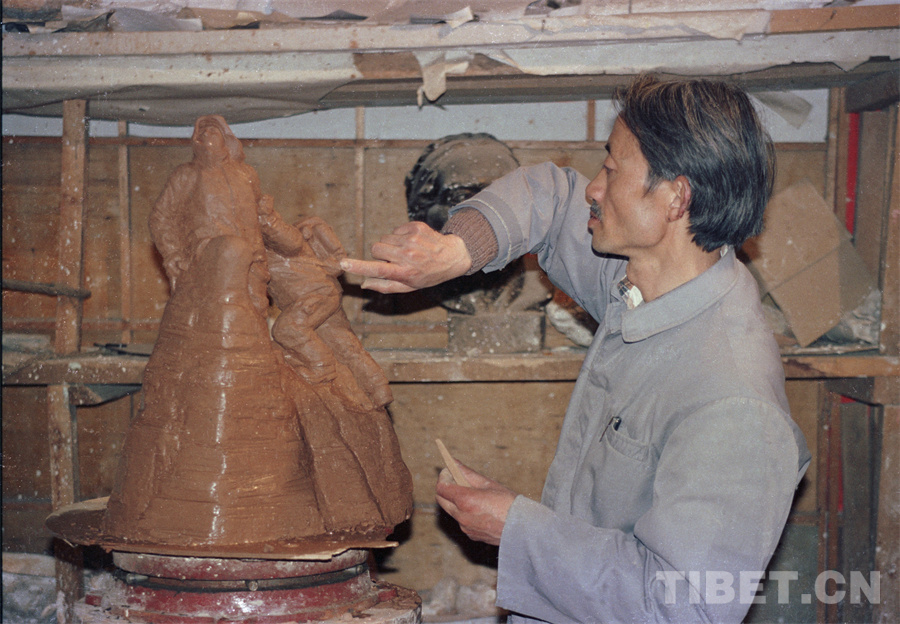 緊接著到來的六十年代,我的主要工作是畫主席像,雕塑主席像??梢哉f,我的雕塑藝術(shù)是從那時開始的。此前雖然也做過一些,但當(dāng)軍管會要求我為自治區(qū)革委會的成立塑一尊大像時,我壯起膽子申請去北京學(xué)習(xí)石膏翻模。經(jīng)軍管會批準,拉薩警備區(qū)司令簽字,買了機票去北京,一學(xué)就是五個月。