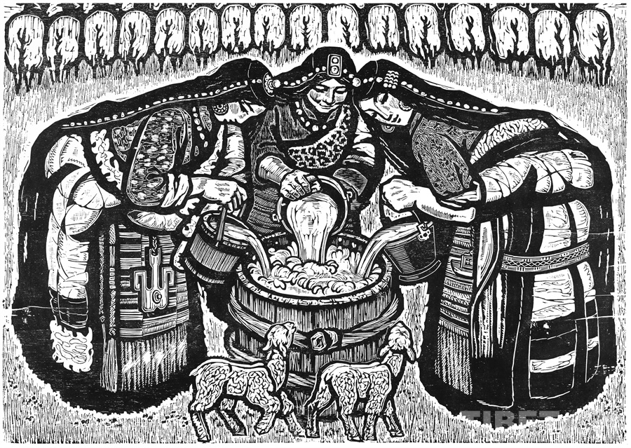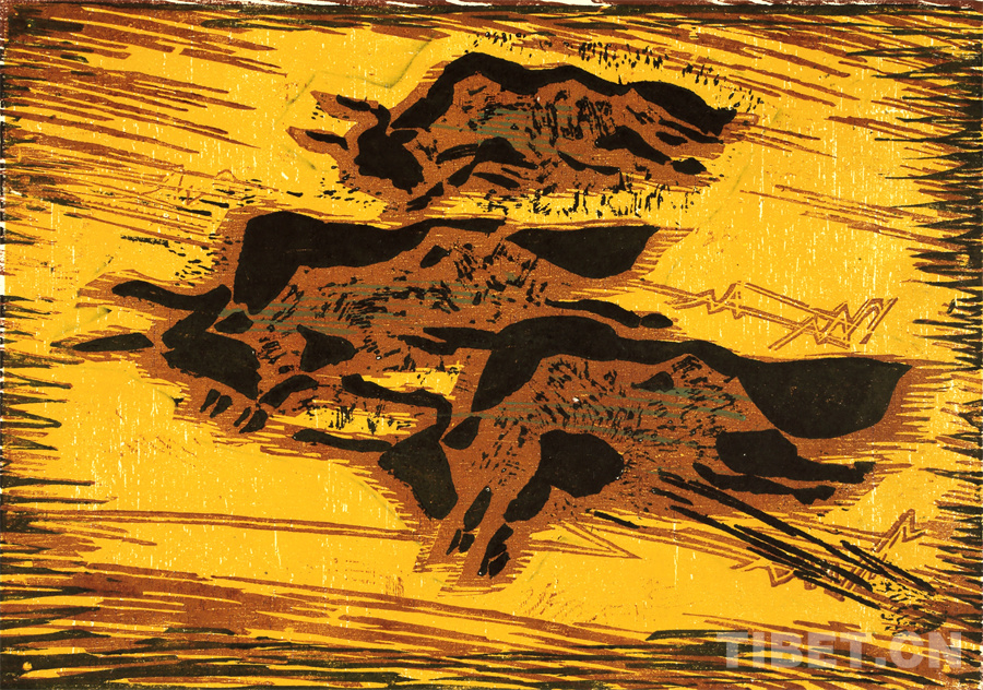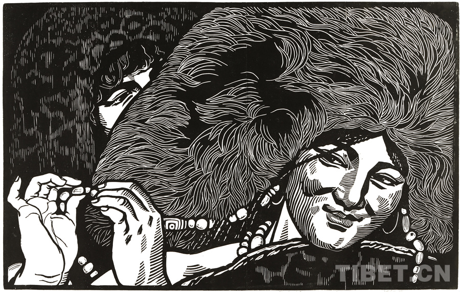 這些年來可以肯定的是我的創(chuàng)作道路和方向是基本對頭的。前幾年有人寫文章評論說,在外來思想影響已很豐富、多元化格局已經(jīng)形成的情況下,差不多只有版畫還恪守著現(xiàn)實主義的創(chuàng)作道路,而且在美術(shù)領(lǐng)域起到了導(dǎo)向作用。順便為版畫說句話:搞版畫的人一直尊重生活,認定生活是第一性的,版畫一開始就是在革命的環(huán)境中發(fā)生、發(fā)展起來的。版畫隨著四大發(fā)明發(fā)源于中國的土壤,后來被歐洲發(fā)展了,反過來又影響到中國。老大的中國有發(fā)明權(quán),但并沒有把它發(fā)展起來。魯迅先生為了推動版畫的發(fā)展,特別介紹了德國版畫和俄羅斯版畫為代表的版畫代表作和代表人物,還有美國的肯特,比利時的麥綏萊爾。介紹文字很精彩,無論對生平、對作品的介紹都很精彩。他推出的那些版畫大師,至今仍巍然屹立在美術(shù)史上。他對版畫的深刻而獨到的理解很可貴。國外有些不很知名但有好作品的,他也介紹到。而且給我們指出哪些是范本,我們一看果然耳目一新。魯迅先生的提倡影響了中國版畫的發(fā)展,進入了一個嶄新的階段,形成所謂新興版畫。這段時間并不長,也就六七十年吧。版畫統(tǒng)領(lǐng)潮流,面向生活的潮流。所以它的路子就很正,這個正就是正統(tǒng),一直發(fā)展得很健康。我從小就受影響,我當(dāng)時所看到的版畫都是反映民間生活的東西:戰(zhàn)爭年代反映民間的疾苦與災(zāi)難,和平年代反映民眾的感情和生活,所表現(xiàn)的風(fēng)景也由平常人眼中投射。一句話就是為人民服務(wù)指導(dǎo)下的藝術(shù)創(chuàng)作。如果問我的作品和生活的距離有多大,可說距離是小的,并未受到更多潮流的干擾,并未背離為人民服務(wù)的方向。正因如此,我要把西藏題材表現(xiàn)好,表現(xiàn)在一個理想的藝術(shù)高度上,而且這一高度還能讓一般欣賞者達到。我的理想就是這樣,要達到這一目標(biāo)看來還很費勁。