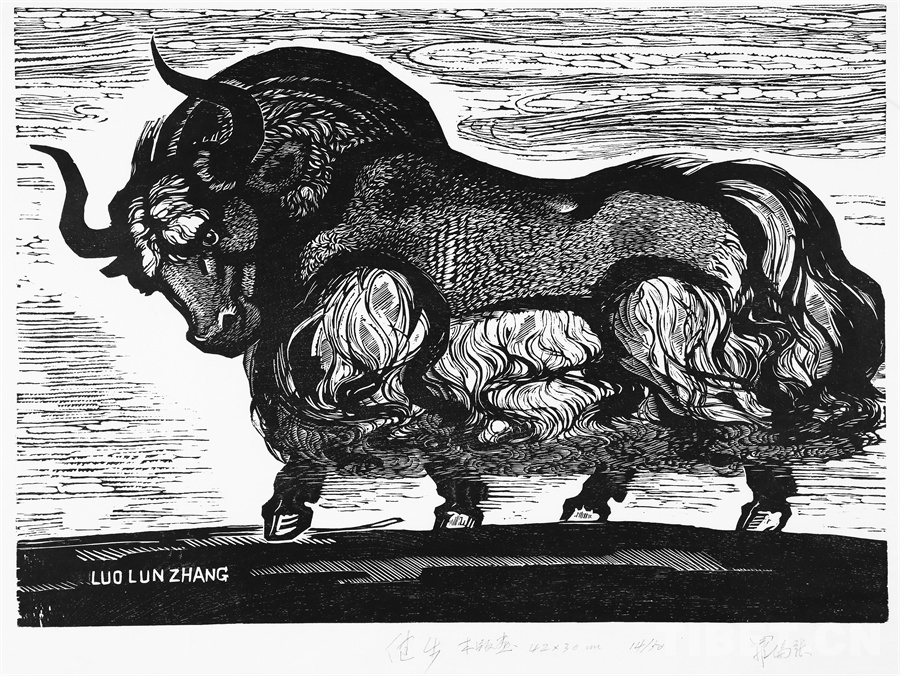 如果非要說我在版畫技法上有什么創(chuàng)新,參照西藏匠人刻經(jīng)文,在石頭上刻出來然后印出來也許就算。這不是一般石版畫概念,那叫石印,平版印刷;我這是凹版印刷??唐饋砗苜M勁,我也不管費不費勁。我有一批這樣的石刻作品。綜合版作品手法較多,我通常分別在石板和木板上刻,然后套起來印。如果搞學(xué)術(shù)交流,也許值得一談。至于說到創(chuàng)新,第一我不認為我有什么創(chuàng)新,第二我不認為在藝術(shù)上、在美術(shù)上能夠輕易談創(chuàng)新這個詞。還有第三個觀點:不需要創(chuàng)新。很簡單,你先把傳統(tǒng)學(xué)到手再說。既是傳統(tǒng),就有它的存在理由,否則早就夭折了,還傳什么統(tǒng)呢?傳,而且統(tǒng)?。〗y(tǒng)是什么意思?基調(diào)是它統(tǒng)一起來的。先把傳統(tǒng)學(xué)到手,爐火純青了,神來之筆出現(xiàn)了,才有可能有所創(chuàng)造。基礎(chǔ)是重要的。