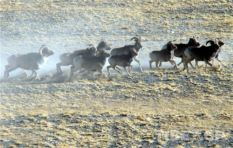 圖為奔跑在羌塘國(guó)家級(jí)自然保護(hù)區(qū)的國(guó)家二級(jí)保護(hù)動(dòng)物盤(pán)羊(2006年) 攝影:唐召明
