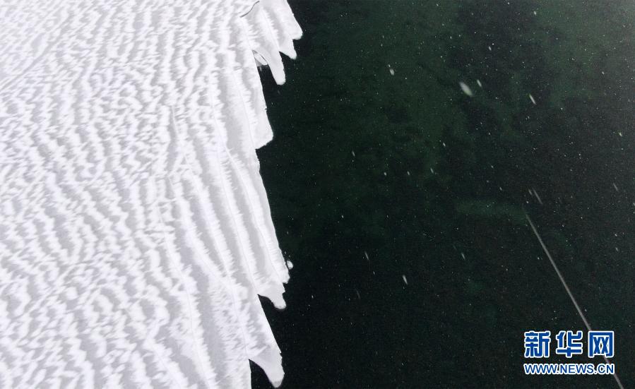 12月17日拍攝的冰雪覆蓋下的青海湖一角(無人機照片)。新華社記者 張宏祥 攝