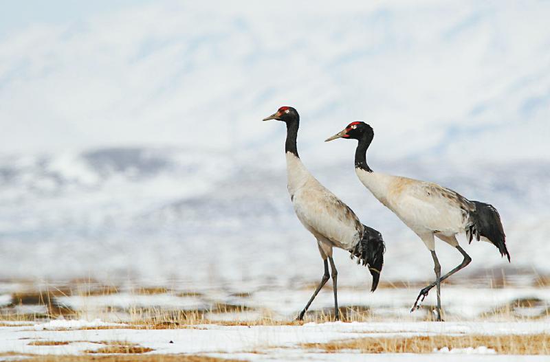 冬日,大批黑頸鶴在西藏拉薩市林周縣境內(nèi)棲息、覓食。 林周縣黑頸鶴自然保護區(qū)建立于1993年,2003年被設(shè)立為國家級自然保護區(qū),是雅魯藏布江中游自然保護區(qū)的核心部分,在每年的11月底至12月初,這里便會迎來成群的黑頸鶴過冬。