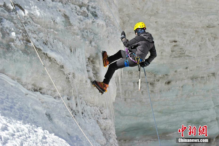 西藏拉薩河谷1號(hào)冰川(廓瓊崗日冰川)景區(qū)將與2021年4月正式全面開放,洛堆峰雪山攀登項(xiàng)目也將正式啟動(dòng)。圖為登山愛好者進(jìn)行攀登訓(xùn)練。(資料圖片)中新社發(fā) 貢嘎來(lái)松 攝