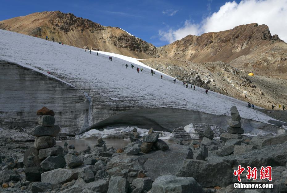 西藏拉薩河谷1號(hào)冰川(廓瓊崗日冰川)景區(qū)將與2021年4月正式全面開放,洛堆峰雪山攀登項(xiàng)目也將正式啟動(dòng)。資料圖為游客在洛堆峰游玩。(無(wú)人機(jī)拍攝)中新社發(fā) 貢嘎來(lái)松 攝