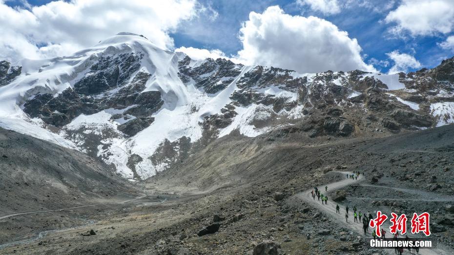 西藏拉薩河谷1號(hào)冰川(廓瓊崗日冰川)景區(qū)將與2021年4月正式全面開放,洛堆峰雪山攀登項(xiàng)目也將正式啟動(dòng)。資料圖為登山愛好者攀登洛堆峰。(無(wú)人機(jī)拍攝)中新社發(fā) 貢嘎來(lái)松 攝