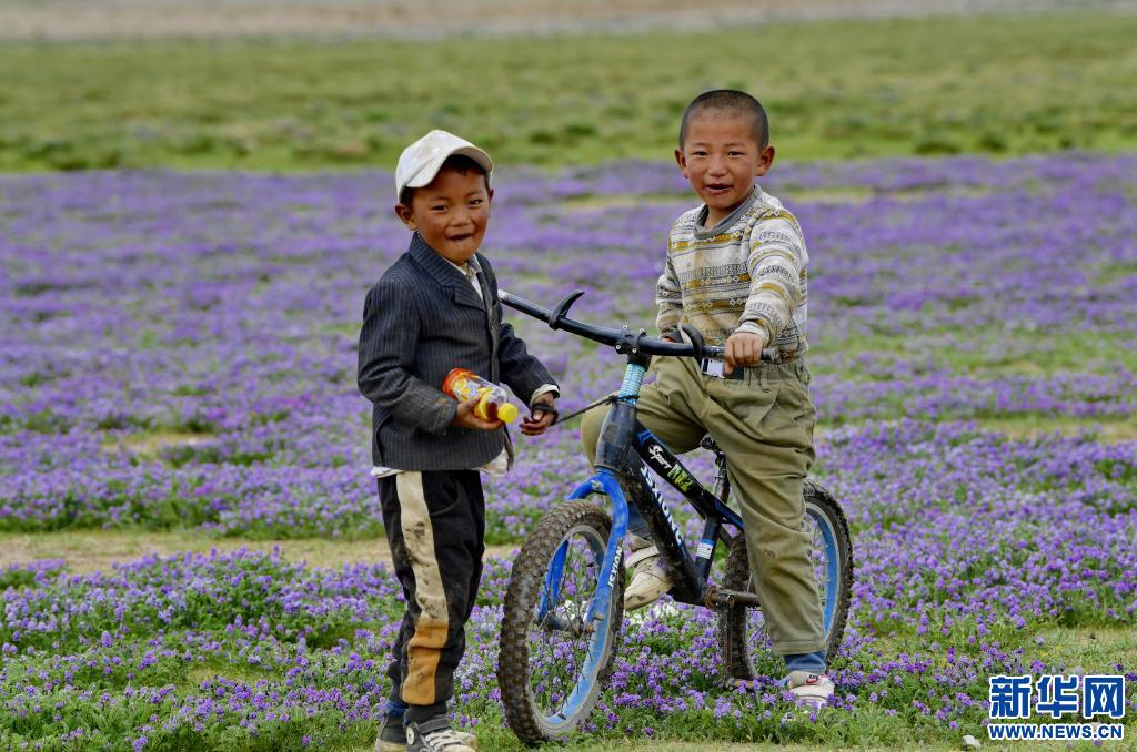 西藏當雄縣格達鄉(xiāng)格達村的兒童在草場玩耍(6月19日攝)。新華社記者 張汝鋒 攝