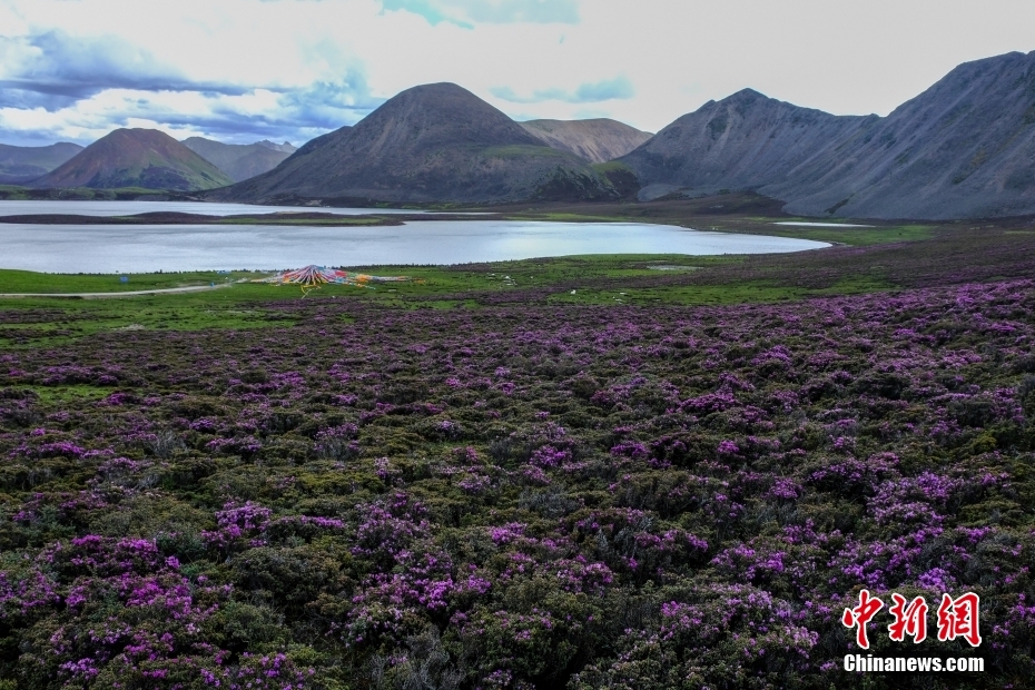 6月23日,思金拉措湖畔紫色鮮花盛開(kāi),景色秀麗。思金拉措位于西藏墨竹工卡縣日多鄉(xiāng),海拔4500多米,周邊群峰簇?fù)?,地形猶如聚寶盤,不少民眾將其稱為西藏的“財(cái)神湖”。 中新社記者 江飛波 攝