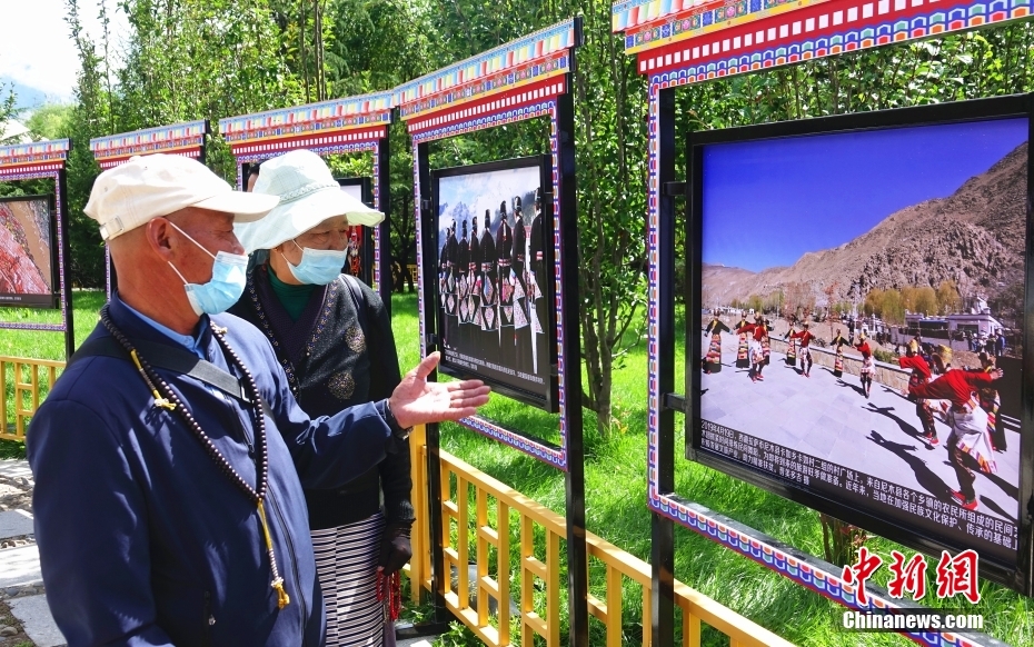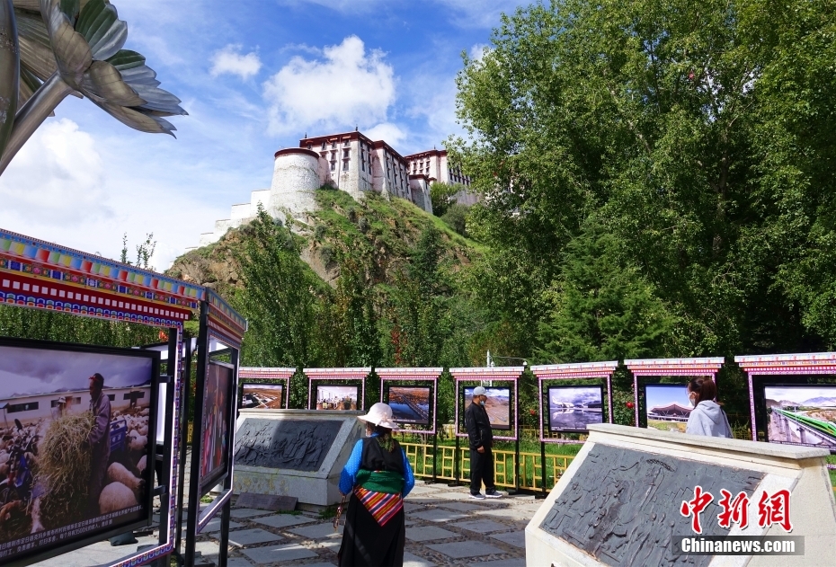8月26日,參觀者在拉薩市宗角祿康公園欣賞“西藏·70——慶祝西藏和平解放70周年影像展”。該展覽分為“波瀾壯闊的歷史進程”“新時代的輝煌成就”兩部分,編選了時間跨度達70年的200余幅攝影作品,集中展現(xiàn)了西藏70年來社會發(fā)展巨變、輝煌建設(shè)成就和西藏各族人民的幸福安康生活。 中新社記者 冉文娟 攝