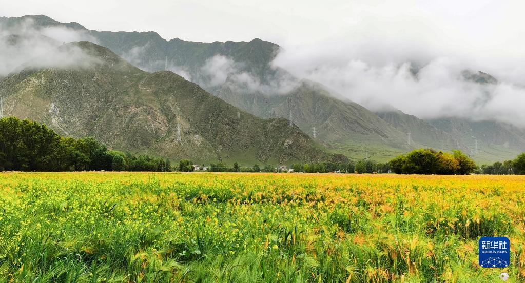 拉薩市達(dá)孜區(qū)塔杰鄉(xiāng)的田野(9月11日攝)。新華社記者 沈虹冰 攝