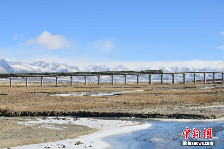 圖為一輛火車(chē)從當(dāng)雄縣阿熱濕地經(jīng)過(guò)。 貢嘎來(lái)松 攝