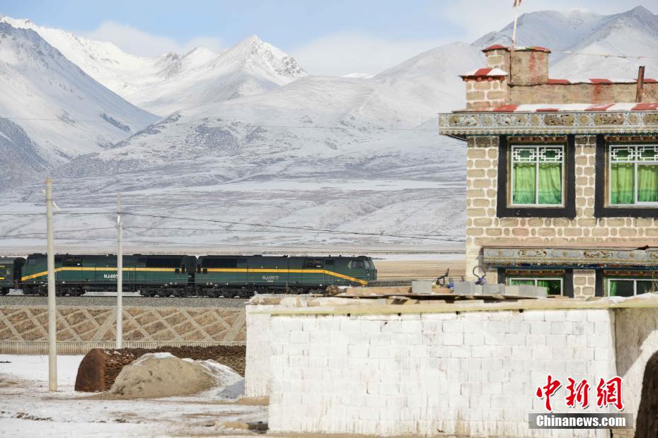 圖為一輛火車(chē)從當(dāng)雄縣阿熱濕地牧民家前經(jīng)過(guò)。 貢嘎來(lái)松 攝