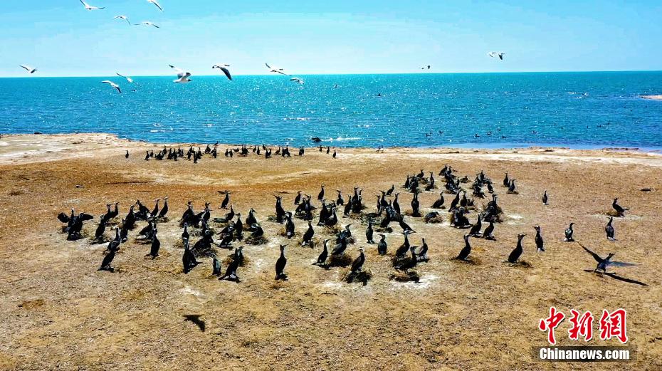 目前,青海湖五大繁殖候鳥斑頭雁、棕頭鷗、漁鷗、普通鸕鶿、都已來到青海湖,監(jiān)測總數(shù)量7300余只。圖為普通鸕鶿來到青海湖畔。 張世偉 攝