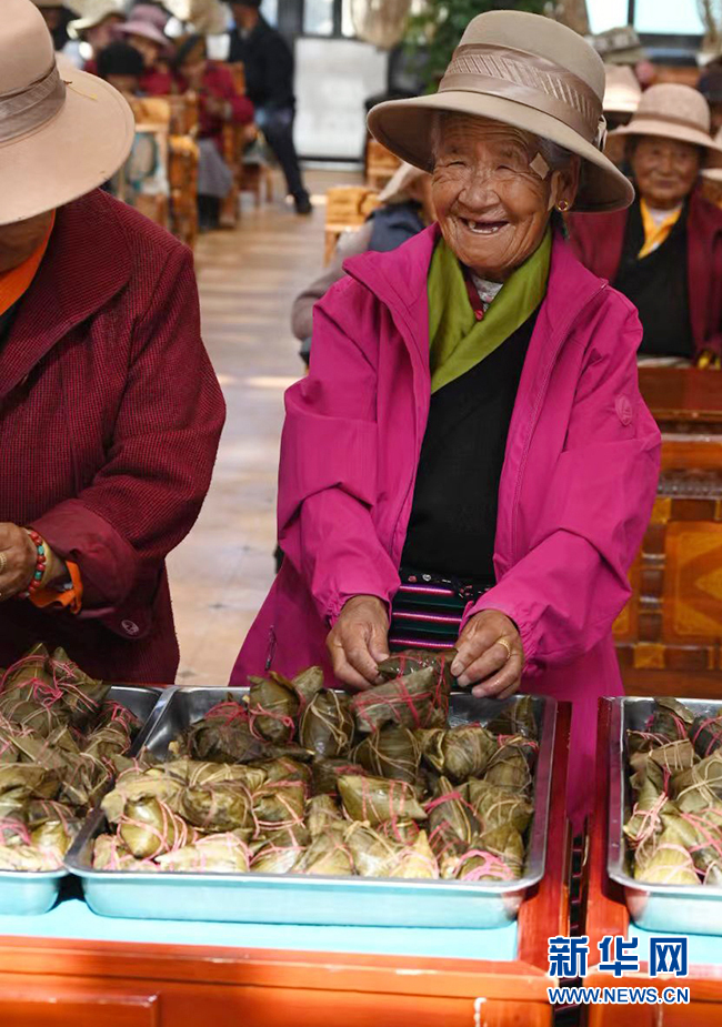 6月3日,西藏山南市集中供養(yǎng)服務(wù)中心的老人們開心地領(lǐng)到千里送來的粽子。新華網(wǎng) 王雷 攝