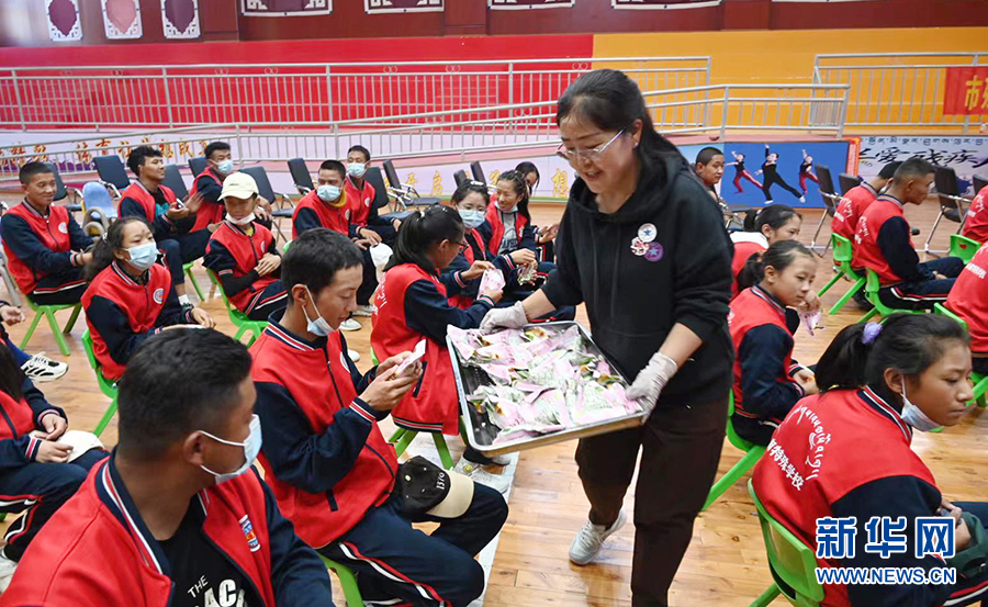 6月3日,在西藏山南市特教學(xué)校,孩子們領(lǐng)到了美味的粽子。新華網(wǎng)發(fā)(許國 攝)