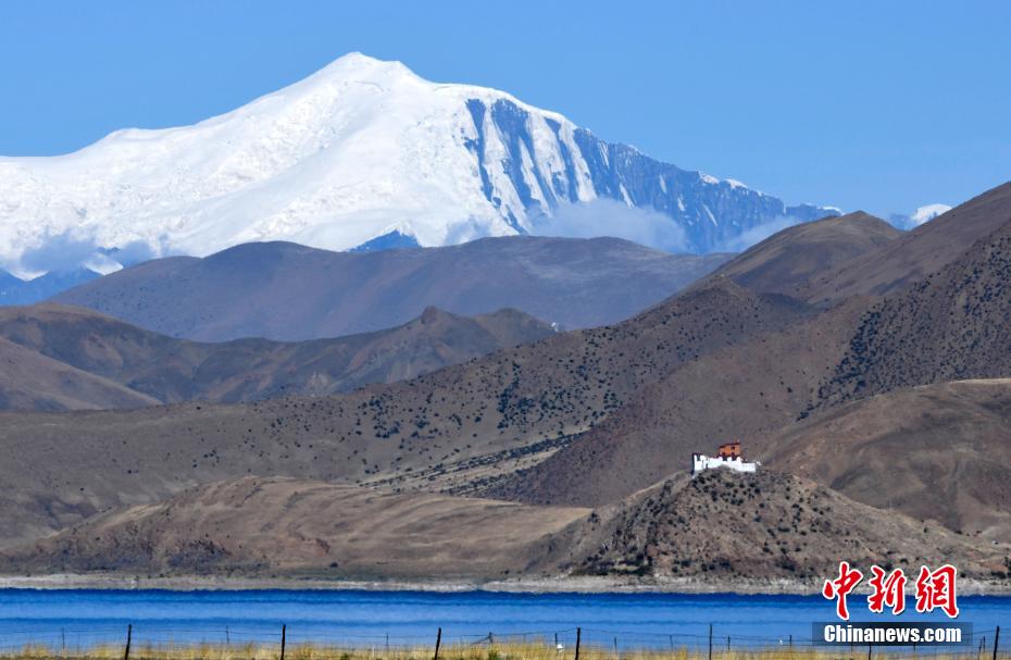 站在直拉山口俯瞰羊卓雍措,深邃藍(lán)的湖水似鑲嵌山間的藍(lán)寶石,與遠(yuǎn)處的庫拉崗日雪山形成一幅壯美圖卷。圖為羊卓雍措。 李林 攝