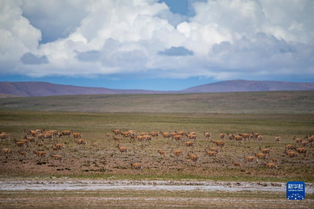 這是在羌塘國家級自然保護區(qū)內(nèi)拍攝的藏羚羊(7月11日攝)。新華社記者 晉美多吉 攝