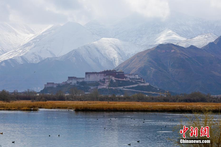 2月26日至27日,海拔3600多米的高原古城拉薩再次迎來降雪天氣,拉薩河兩岸延綿的山體猶如披上了一層白紗,一派高原特色城市風(fēng)光,景色秀麗。布達(dá)拉宮觀景臺(tái)、拉薩南山公園等地吸引了不少旅游攝影愛好者“打卡”古城雪景。圖為從拉魯濕地遠(yuǎn)眺布達(dá)拉宮與雪山風(fēng)光。