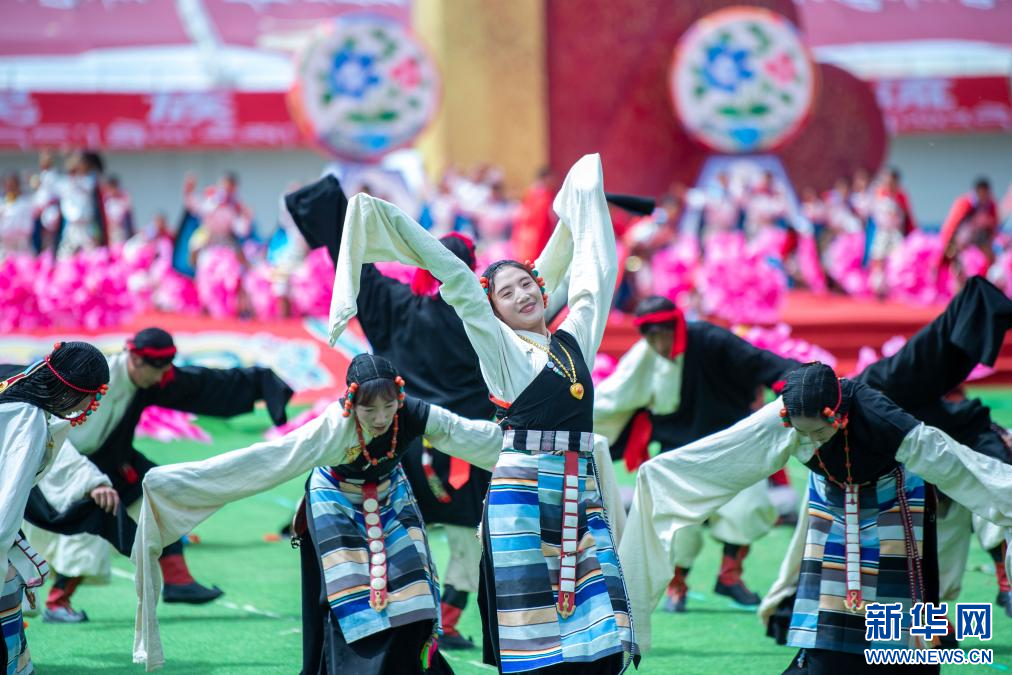 8月10日,演員在開(kāi)幕式上表演舞蹈。新華網(wǎng) 旦增努布 攝
