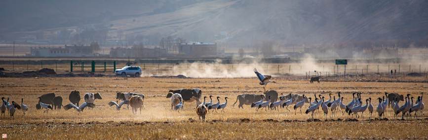 林周縣地處雅江中游河谷黑頸鶴國家級自然保護(hù)區(qū),優(yōu)良的生態(tài)環(huán)境、適宜的氣候,讓這里成為黑頸鶴越冬的天選之地。
