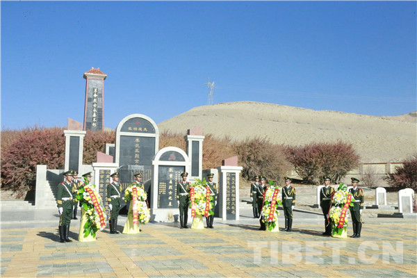 圖為駐阿里官兵向革命烈士敬獻(xiàn)花圈。攝影:李海峰