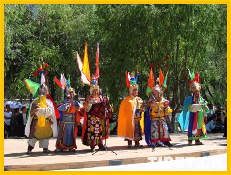 圖為山南雅隆扎西雪巴藏戲。藏戲是藏族傳統(tǒng)戲劇的杰出代表,有西藏白面具藏戲、藍(lán)面具藏戲,青海黃南藏戲,甘肅甘南藏戲,四川嘉絨藏戲、康巴藏戲,同時(shí)西藏還有門巴戲等眾多藏戲流派。目前,已有12個(gè)傳統(tǒng)戲劇類非物質(zhì)文化遺產(chǎn)項(xiàng)目列入國(guó)家和西藏自治區(qū)級(jí)名錄。
