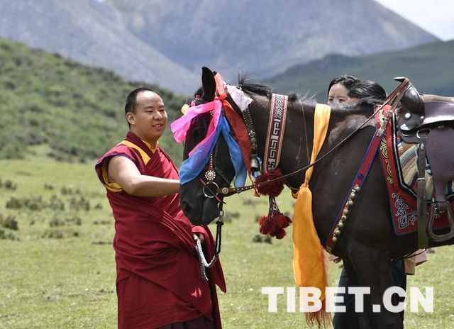 當(dāng)?shù)匦沤倘罕娐犝f十一世班禪要來夏季牧場(chǎng)放牧點(diǎn),紛紛趕著牦牛和馬在此等候,希望能瞻禮到大師的尊榮,為自己帶來賜福和好運(yùn)。
