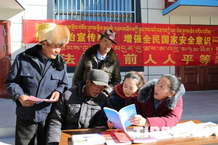 中國西藏網(wǎng)訊 “這種文藝活動加普法宣傳好?。⊥ㄟ^這些宣傳活動,我們老百姓對國家的利民惠民政策和相關(guān)法律法規(guī)有了更深的認識?!币晃皇掷锬弥稇椃ā沸麄髻Y料的阿佳啦對記者說。