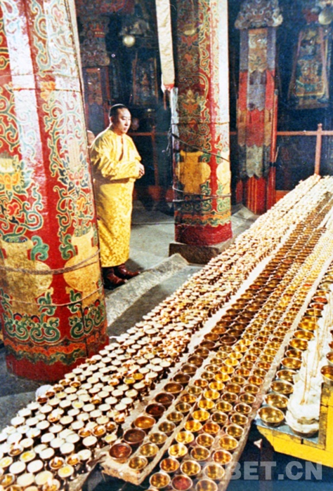 十世班禪大師在大昭寺朝拜釋迦牟尼佛,1982年。劉麗嘉攝