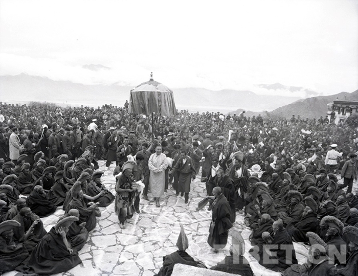 十世班禪大師到哲蚌寺進(jìn)行佛事活動時(shí),受到廣大僧眾的熱烈歡迎,1982年。劉麗嘉攝