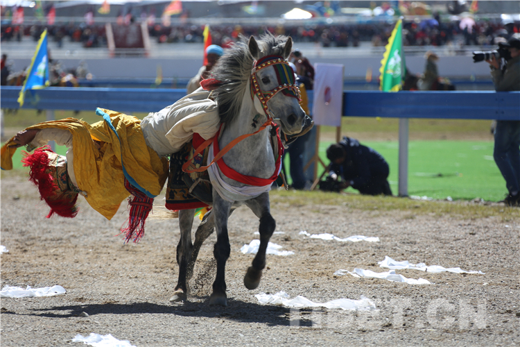 圖為2019“羌塘恰青格薩爾賽馬藝術(shù)節(jié)”開幕式上的馬術(shù)表演 攝影:王淑