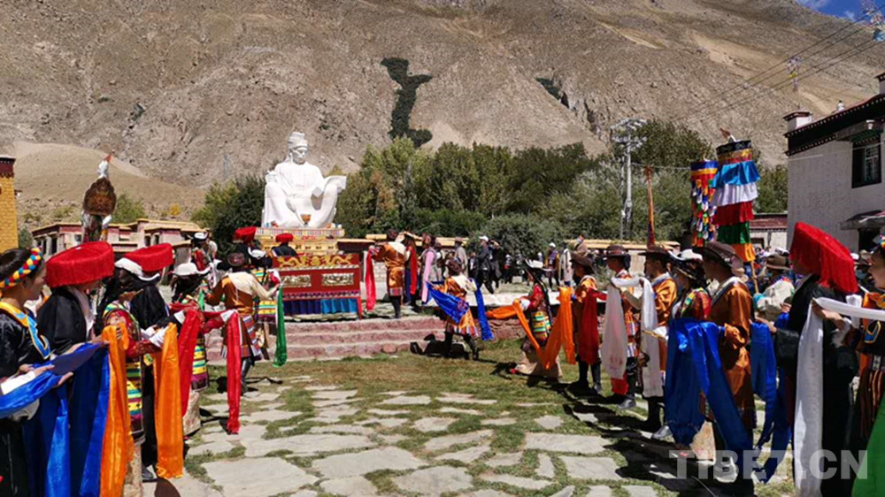 圖為藏族群眾為吞彌?桑布扎塑像敬獻哈達(dá) 攝影:王茜
