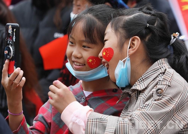 圖為在演出現(xiàn)場用手機(jī)留影的小朋友