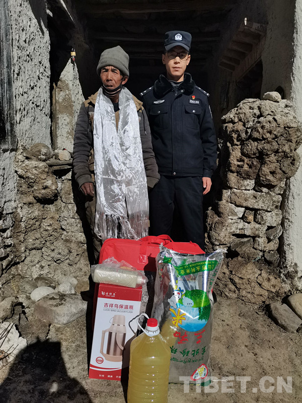 中國西藏網(wǎng)訊 “人生最美夕陽紅,世間最美老年花?!弊鹄稀⒕蠢?、愛老、助老是中華民族引以為傲的傳統(tǒng)美德。在元旦和2021年中國人民警察節(jié)來臨之際,西藏自治區(qū)拉孜縣公安局查務公安一級檢查站民警達瓦次仁抽出休息時間,自掏腰包看望慰問彭措林鄉(xiāng)那嘎村、芒普鄉(xiāng)普村、熱薩鄉(xiāng)卡西村、曲瑪鄉(xiāng)曲瑪村等4名孤寡老人。