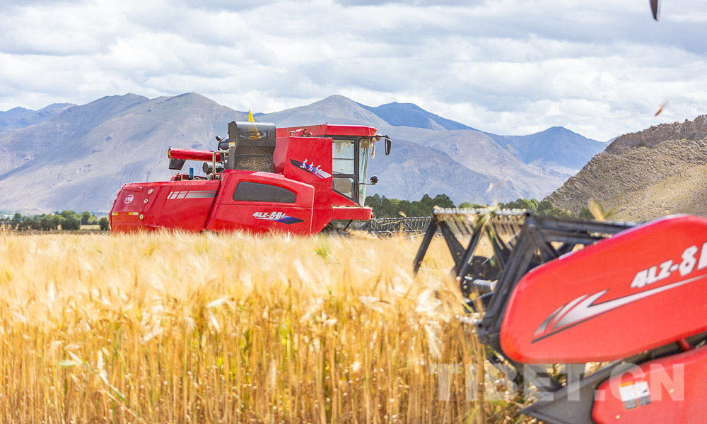圖為日喀則市江孜縣紫金鄉(xiāng)努堆村機械化秋收(資料圖)