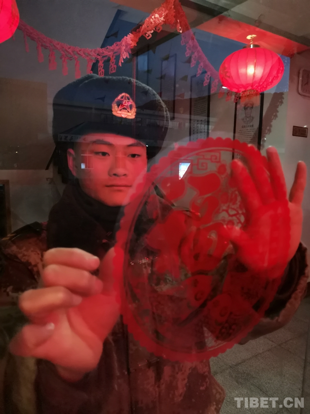 圖為貼福字、掛春聯(lián),高原軍營(yíng)年味濃 攝影:牛玉壯